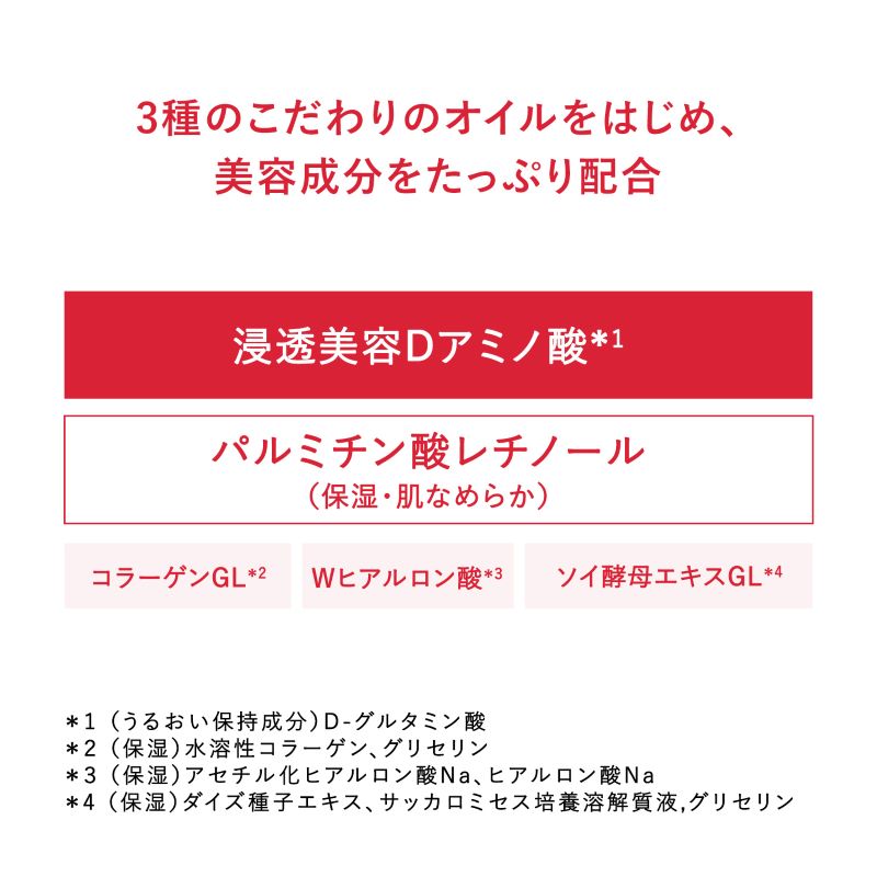 濃厚オイルがキメの奥までじゅわ~っと浸透。 もちっとハリつや溢れる肌へ。