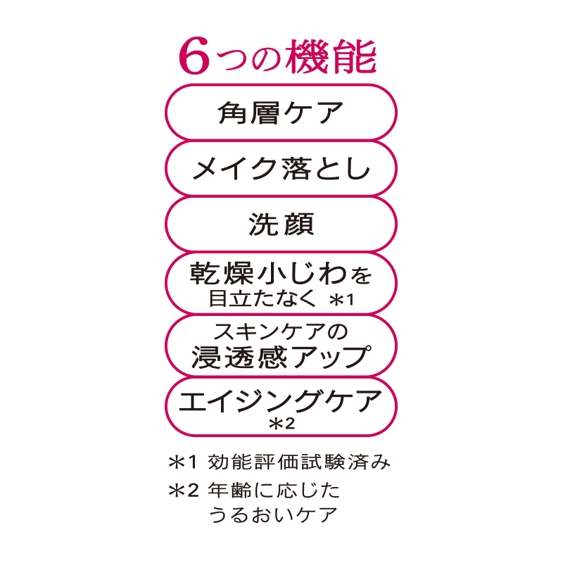 1品で古い角層やメイクまですっきり、洗い上がりはしっとり感触に。