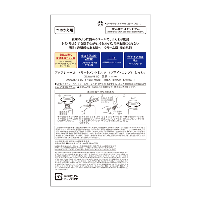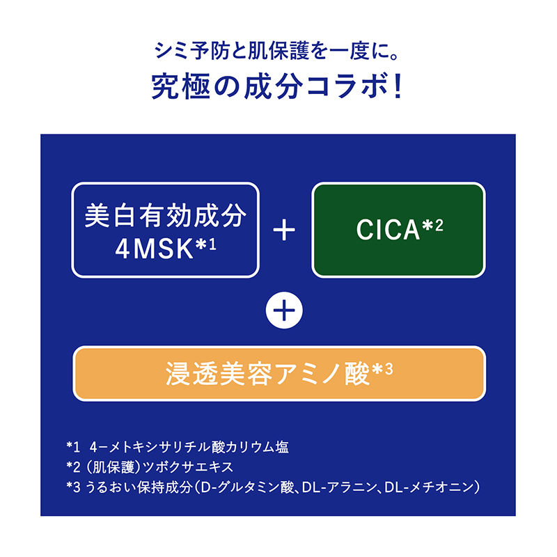シミ・そばかすを防ぎながら、うるおって、毛穴も気にならない明るく透明感のある肌へ、クリーム級 美白**乳液。