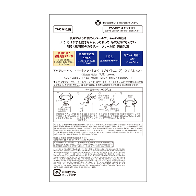 シミ・そばかすを防ぎながら、うるおって、毛穴も気にならない明るく透明感のある肌へ、クリーム級 美白**乳液。