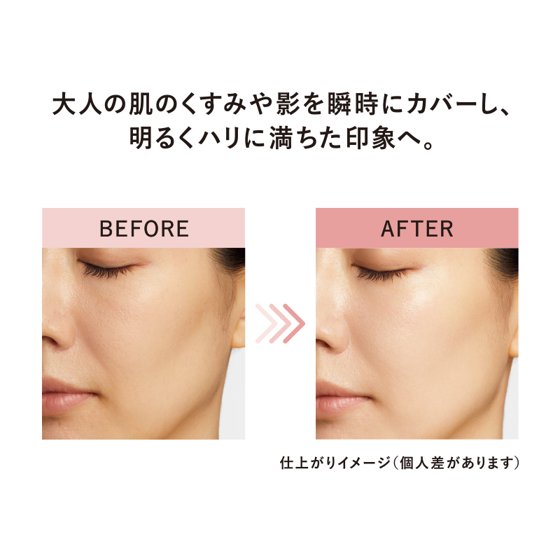 大人の肌のくすみや影を瞬時にカバーし、明るくハリに満ちた印象へ。 自然にトーンアップするベビーピンク。