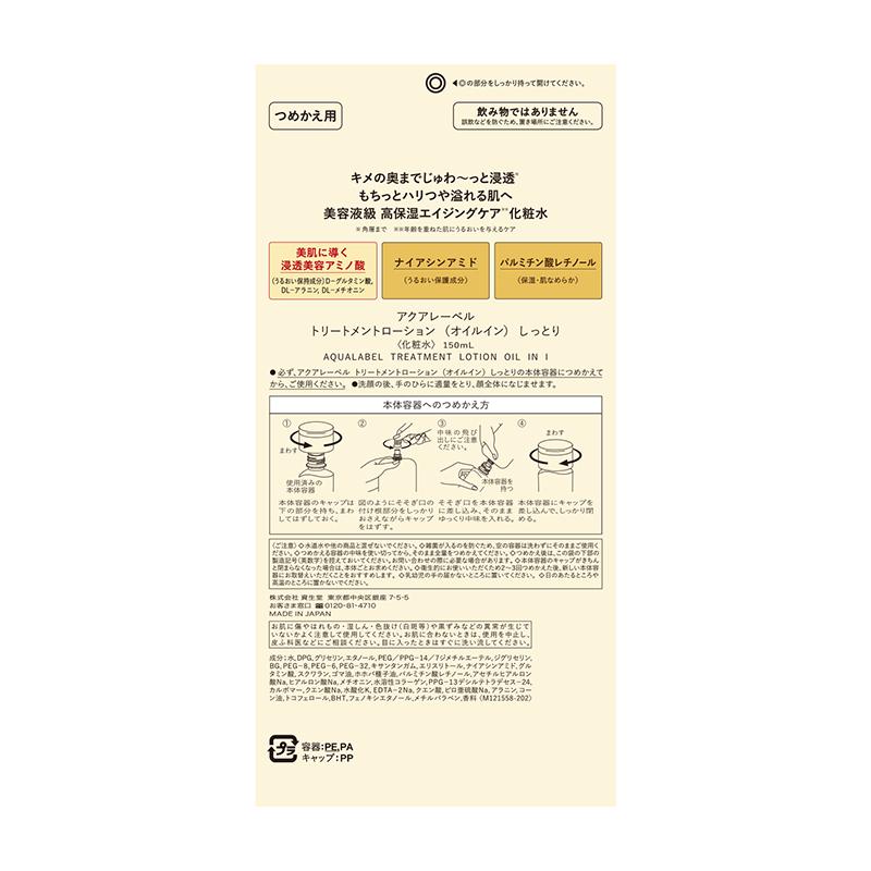 ナイアシンアミド(うるおい保護成分)配合。悩める大人の肌に、ハリつや。キメの奥までじゅわ~っと浸透(角層まで)。