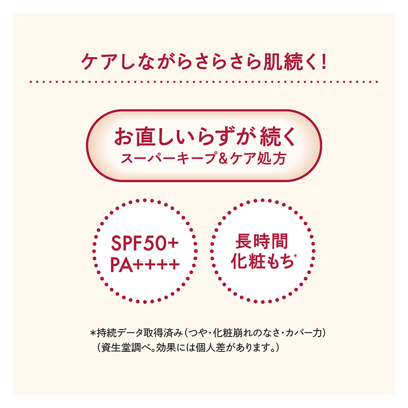 *テカリのなさ・さらさら感・薄れのなさ・ヨレのなさ・毛穴の目立たなさ(メーカー調べ、効果には個人差があります。)