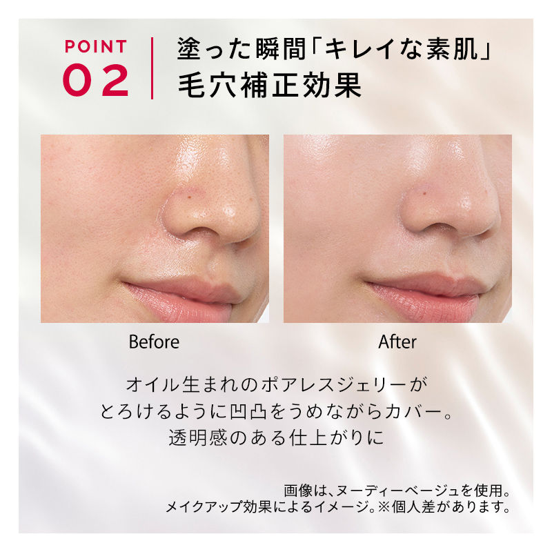 テカリ・カサつきダブルで防ぎ、スキンケアまで叶う、毛穴レスくずれ防止下地。