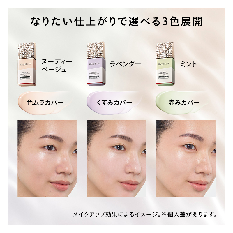 ヌーディーベージュ 自然になじんで明るい素肌 ミント 肌の赤みをカバー ラベンダー ワントーン明るく透明感アップ