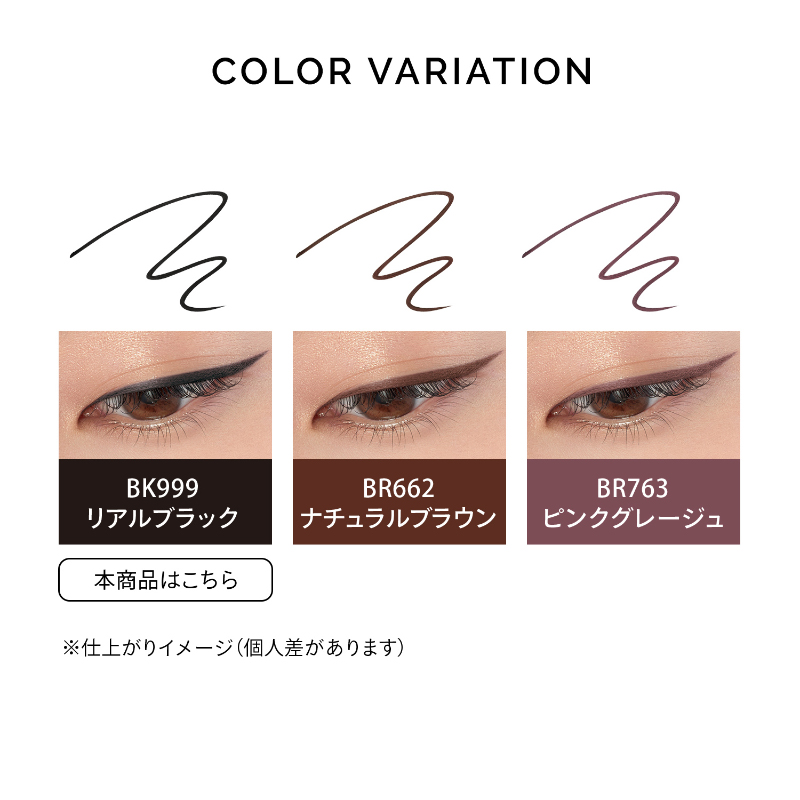 リキッドのようなすっとした細ラインが安定して描けて、仕上がりが一日中続く*ペンシルライナー。