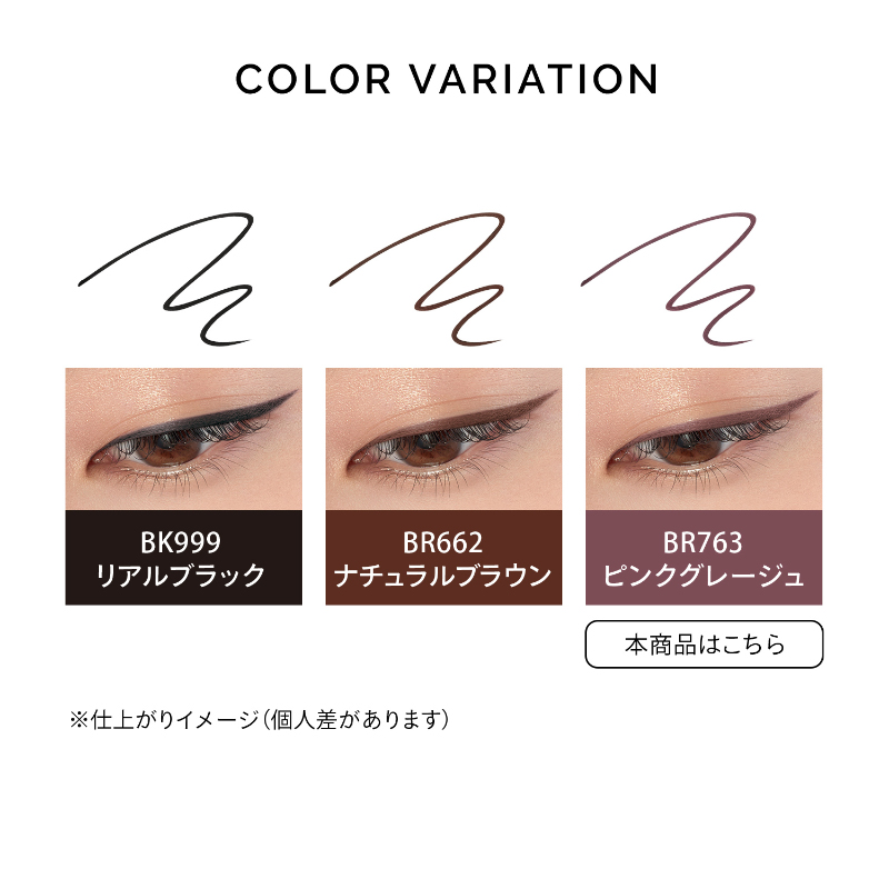 リキッドのようなすっとした細ラインが安定して描けて、仕上がりが一日中続く*ペンシルライナー。