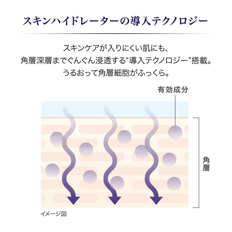 うるおいが入りにくいと感じる肌にも、角層深くまで吸い込まれるように浸透する「導入テクノロジー」搭載。