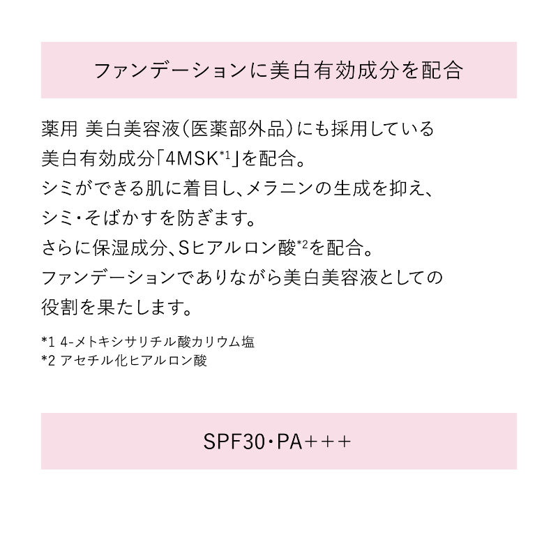 美白ケアしながら密着してシミカバーするファンデーション。