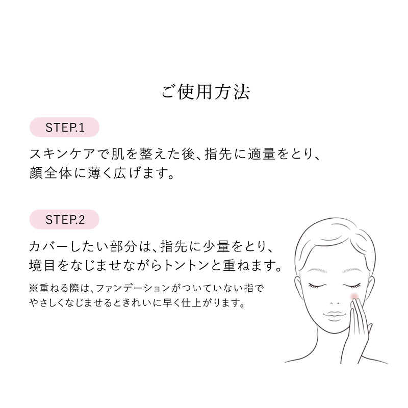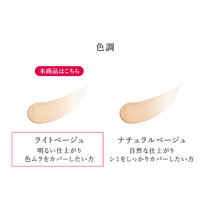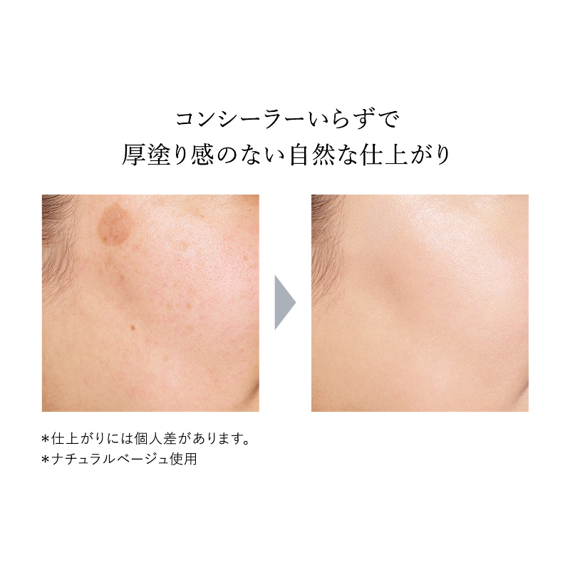 軽やかに広がり、気になるシミや色ムラに密着して目立たせず、みずみずしいうるおいが長時間続きます。