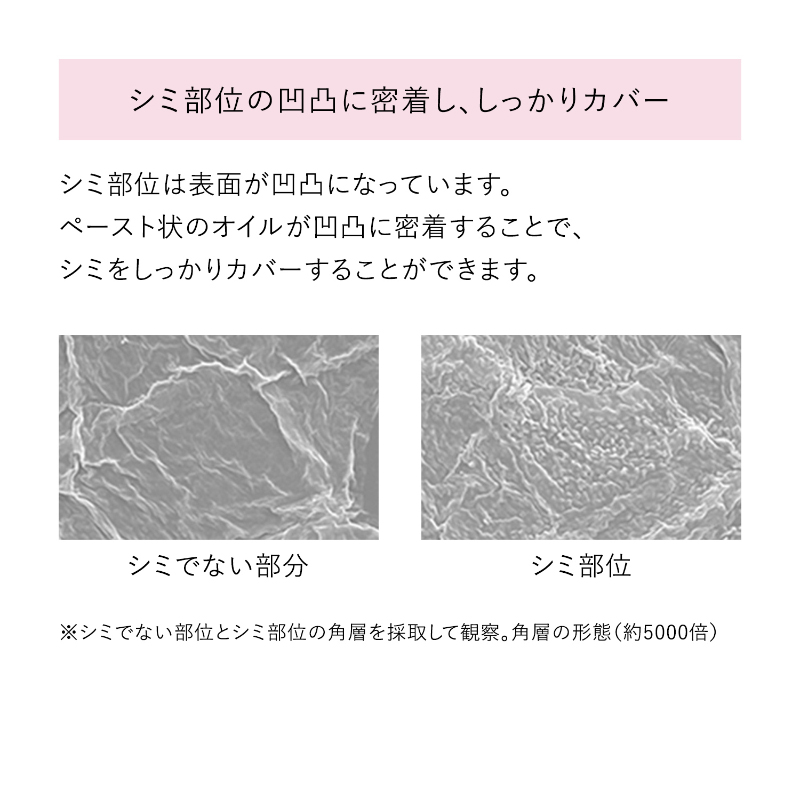 軽やかに広がり、気になるシミや色ムラに密着して目立たせず、みずみずしいうるおいが長時間続きます。