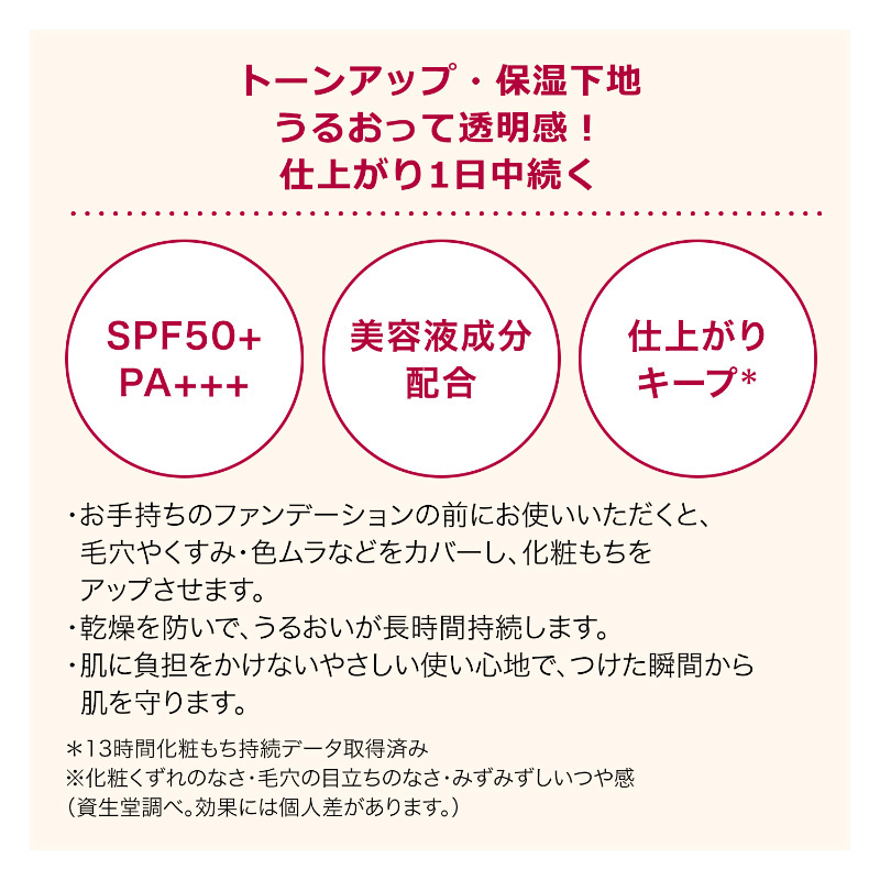 透明感あふれる仕上がりが崩れず1日中*続くトーンアップ下地。