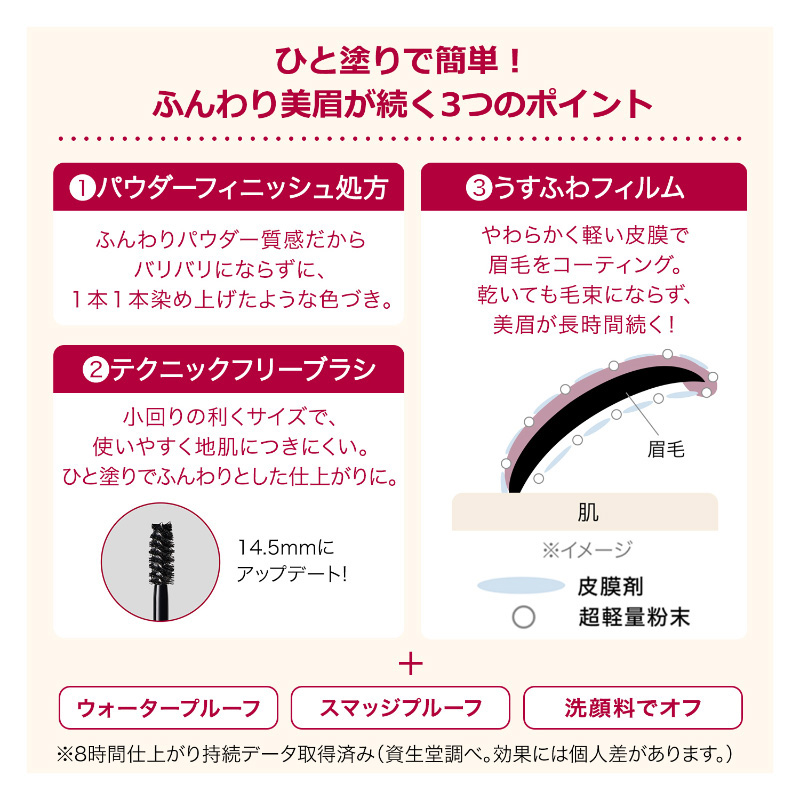 バリバリにならずに、ふんわり美眉が長時間*続く、アイブロウマスカラ。