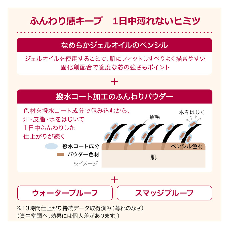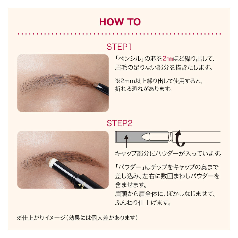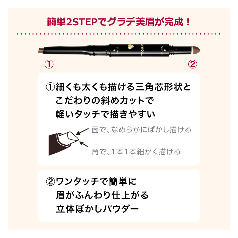 密着するから薄れにくいジェル生まれのペンシルと、ふんわりパウダーでグラデ美眉が1日中*続くダブルエンドアイブロウ。