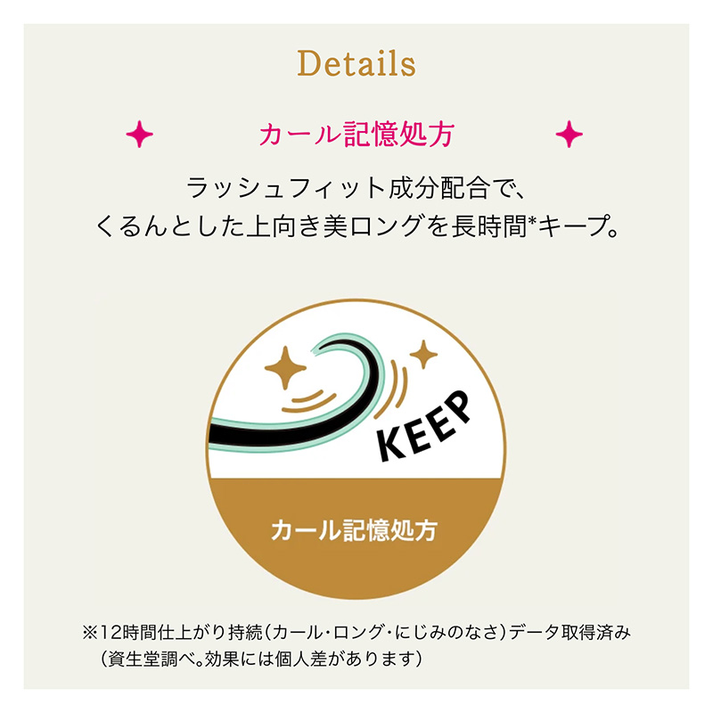 *12時間仕上がり持続(カール・ロング・にじみのなさ)データ取得済み(メーカー調べ。効果には個人差があります。)。