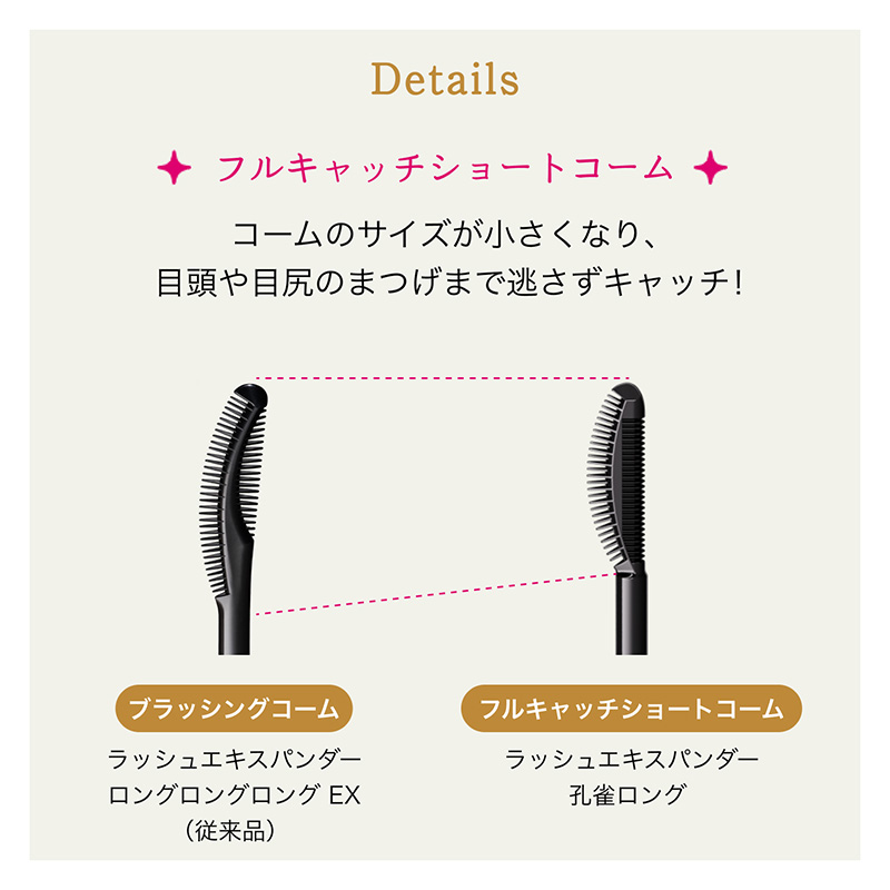 キワのまつげまで伸ばしつくすことで、目幅を拡張。美しい長いまつげが長時間*続くマスカラ。