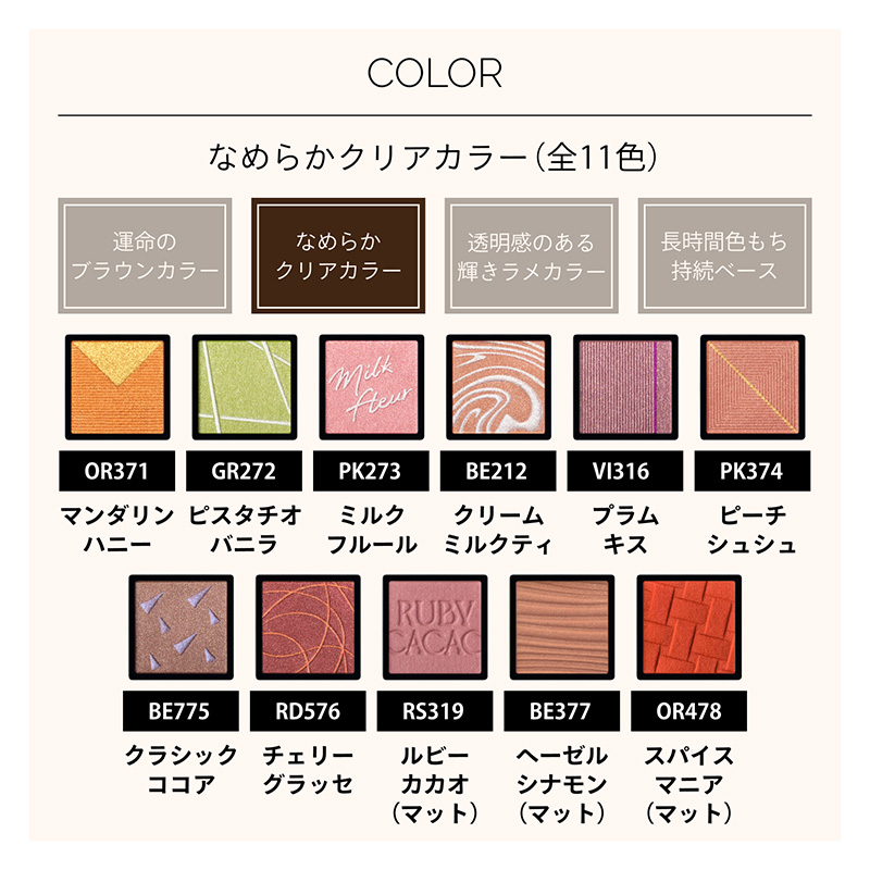 どんな色の組み合わせでもなじんで、目もとを明るく見せる なめらかクリアカラー。