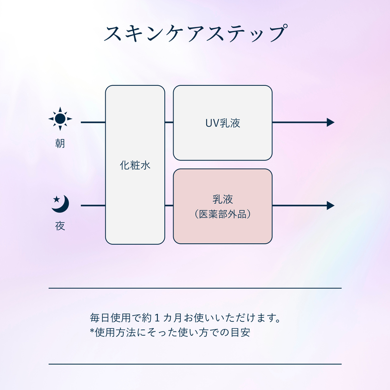 メラニンの生成を抑え、シミ・そばかすを防ぐ。エチルアルコールフリー。パラベンフリー。