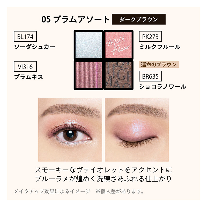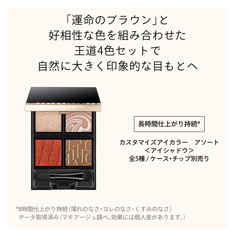瞳色になじむ運命のブラウンと、好きな色を自由に組み合わせて、自然に大きく印象的な目もとへ。
