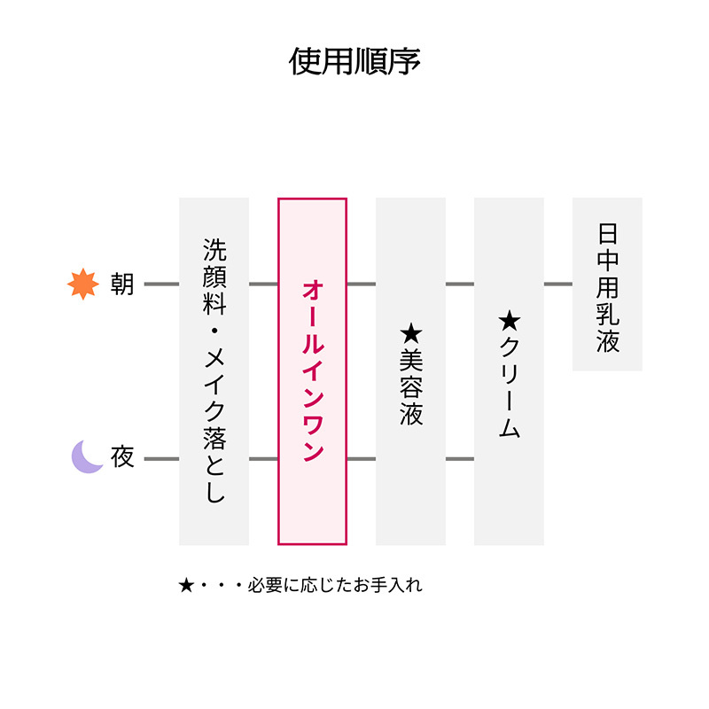 7つの機能(化粧水・乳液・美容液・マッサージ・クリーム・アイクリーム・パック)がひとつになった大人のオールインワン。