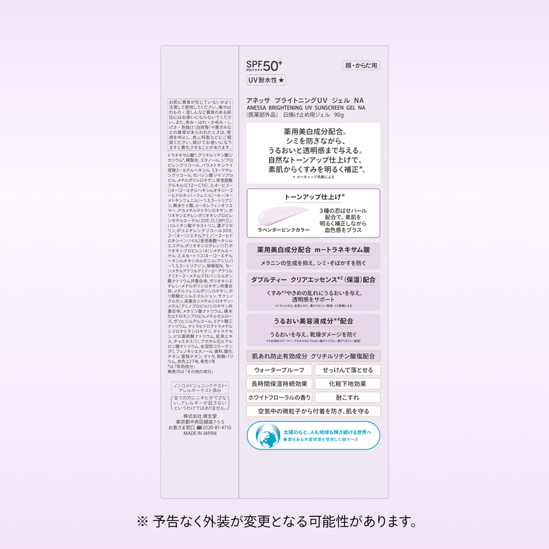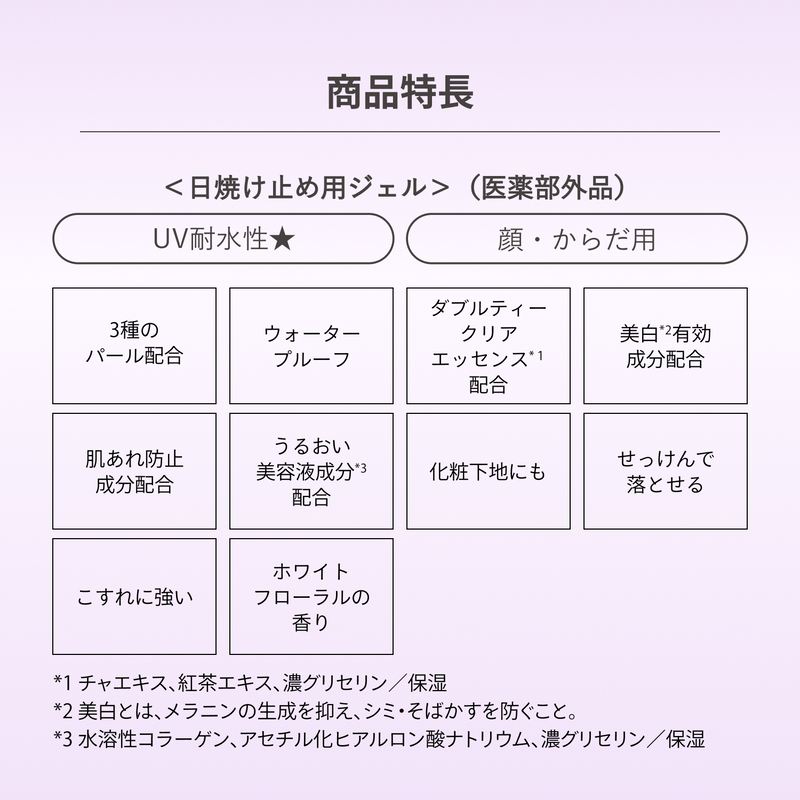 シミを防ぎながら、うるおいと透明感まで与える。 自然なトーンアップ仕上げで、素肌からくすみを明るく補正*。