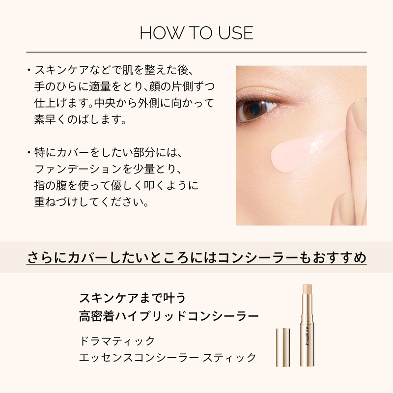 美容液でファンデ成分を包み込むから美容液が肌にずっとふれる独自技術(セラムファースト技術)。