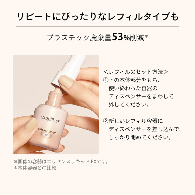 美容液でファンデ成分を包み込むから美容液が肌にずっとふれる独自技術(セラムファースト技術)。