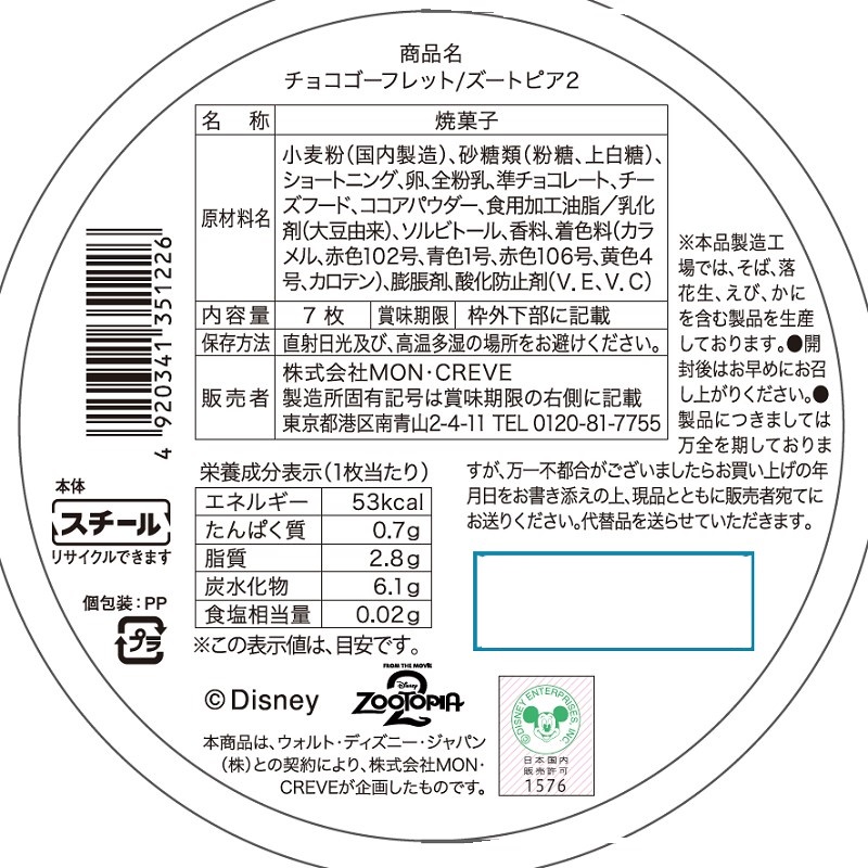 中にはニックとジュディの2種のデザインがプリントされたゴーフレットが入っています。