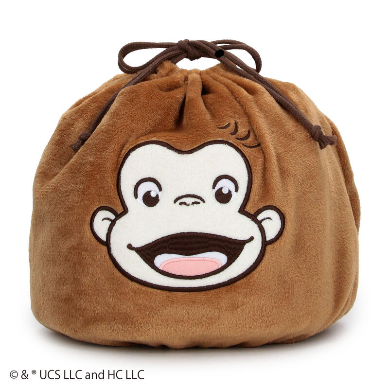 ジョージの顔をアップリケ刺繍した巾着には、寒い時期に快適な暖かで柔らかなフランネルフリース素材を