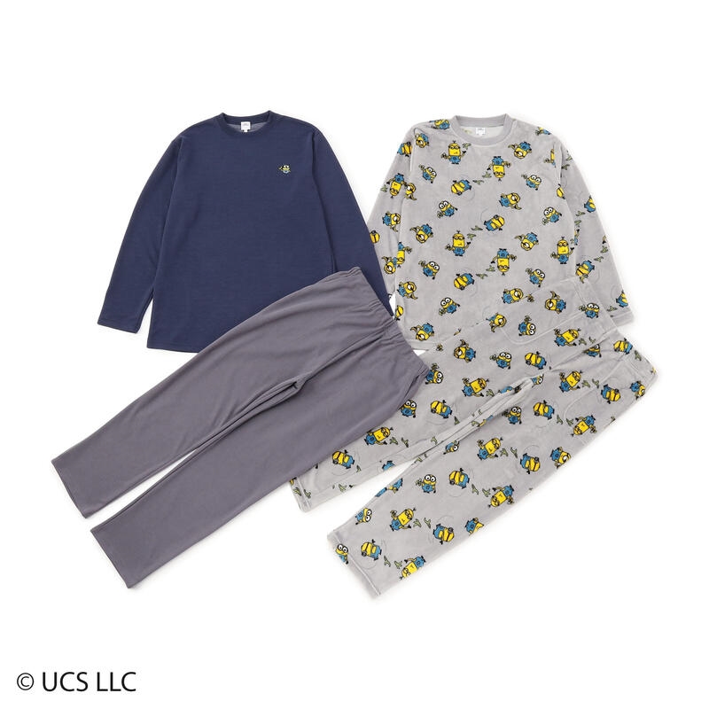 フランネルフリース素材のルームセットはミニオンズの総柄、