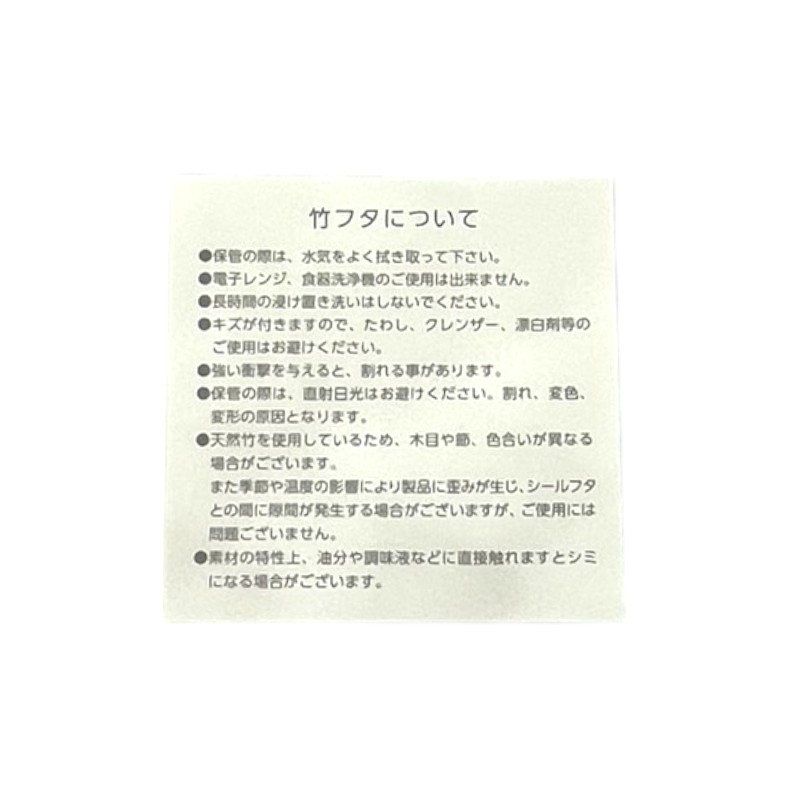 フタは天然竹製のため、節の出方など模様は写真とは異なります。