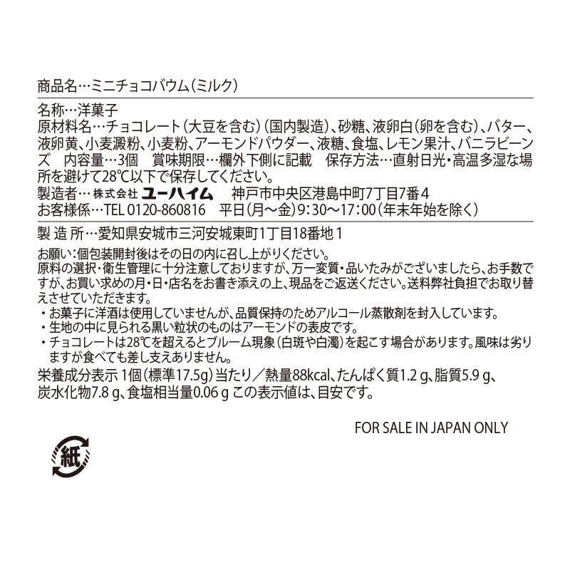 ミルクチョコレートに包まれたかわいらしいサイズのバウムクーヘン。