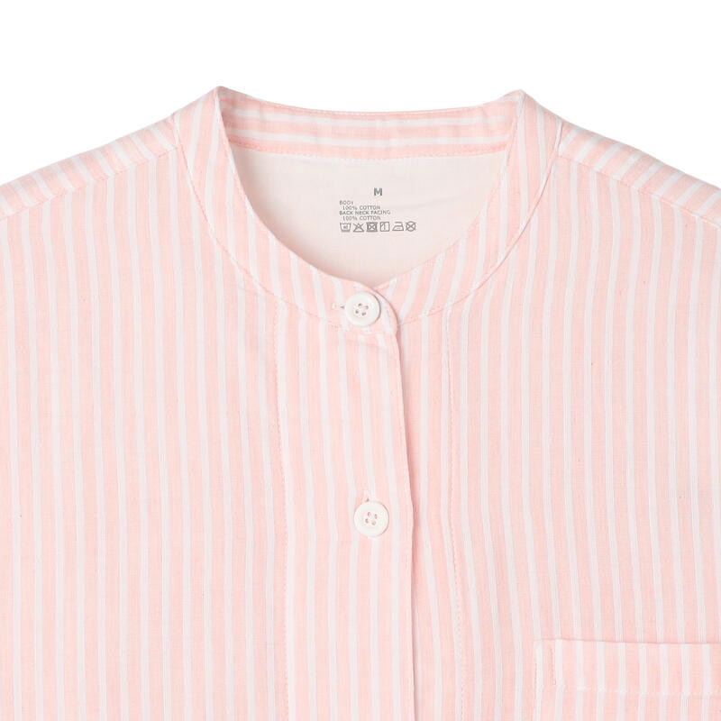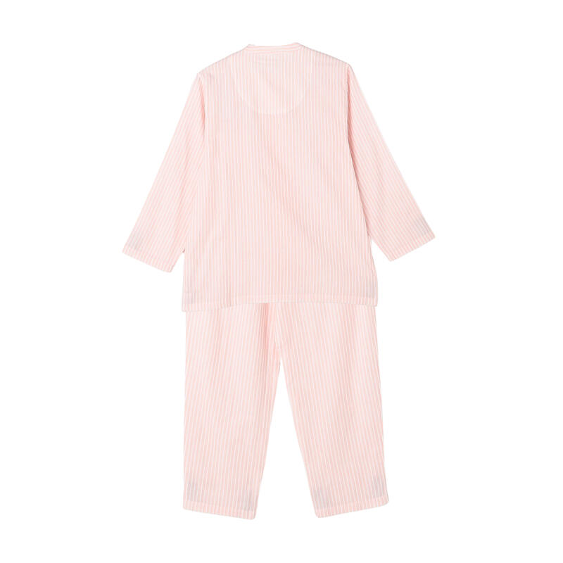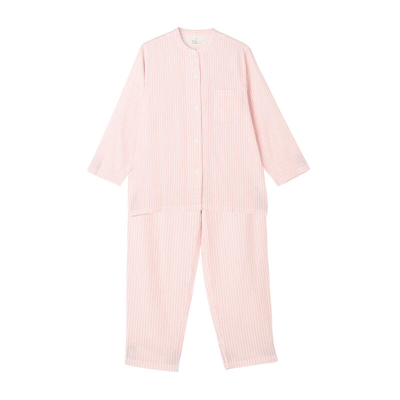 すっきりとした丸首ノーカラーのパジャマ。