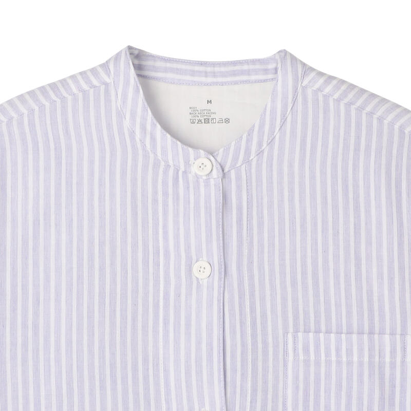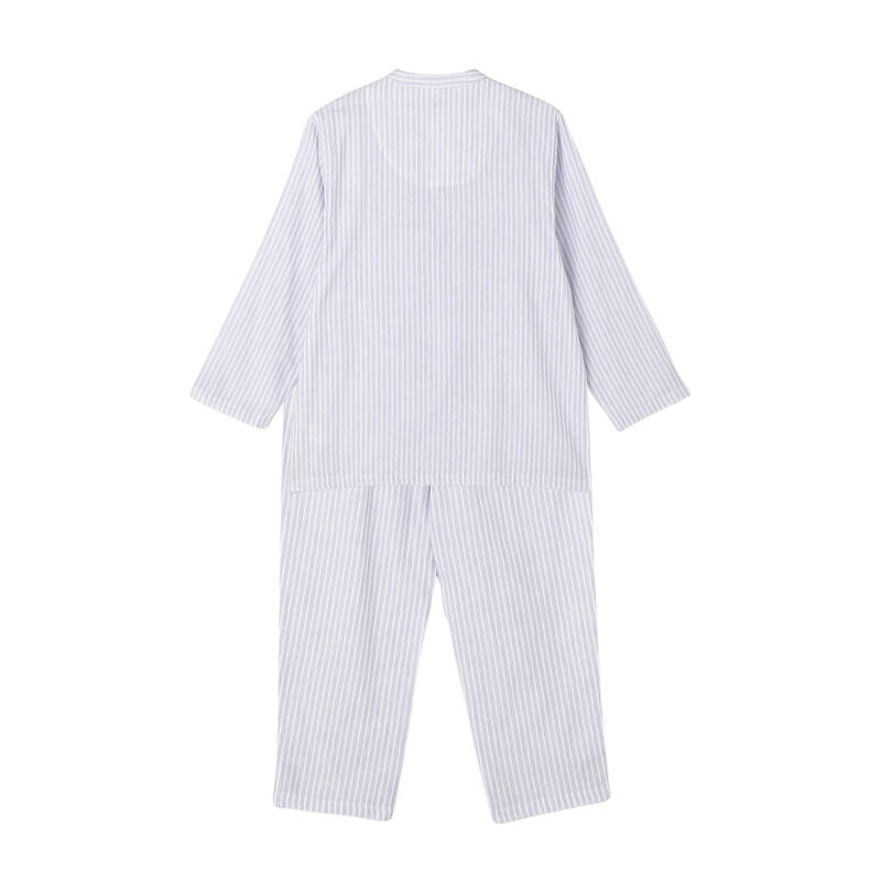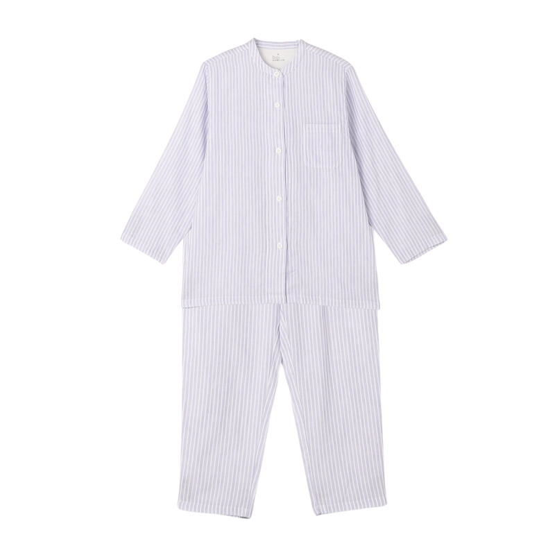 すっきりとした丸首ノーカラーのパジャマ。