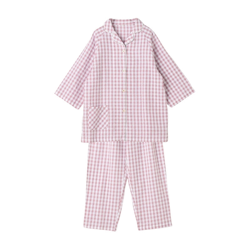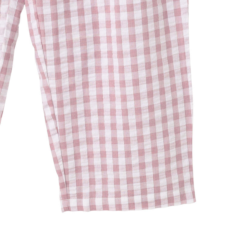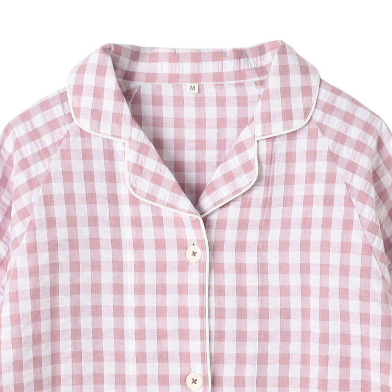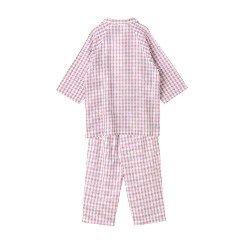 肌にさらっと心地よく着られるコットン100%のサッカー素材仕立て。
