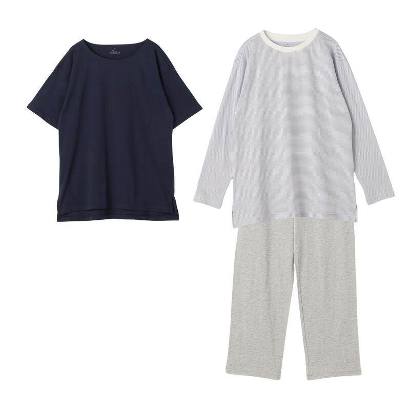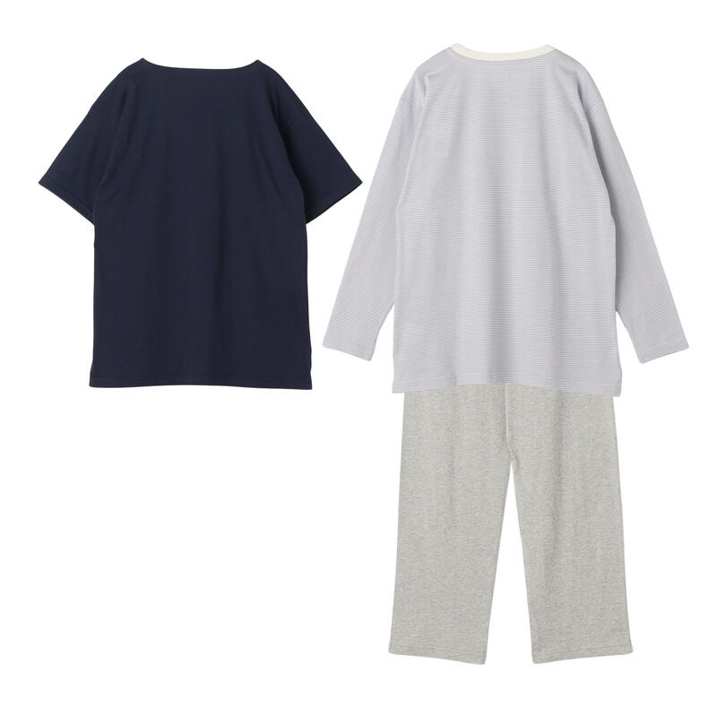 トップス 半袖・長袖の2枚とロングパンツのルームセット。