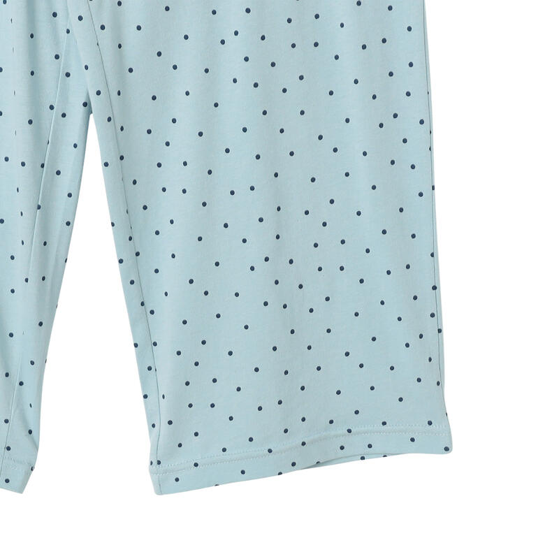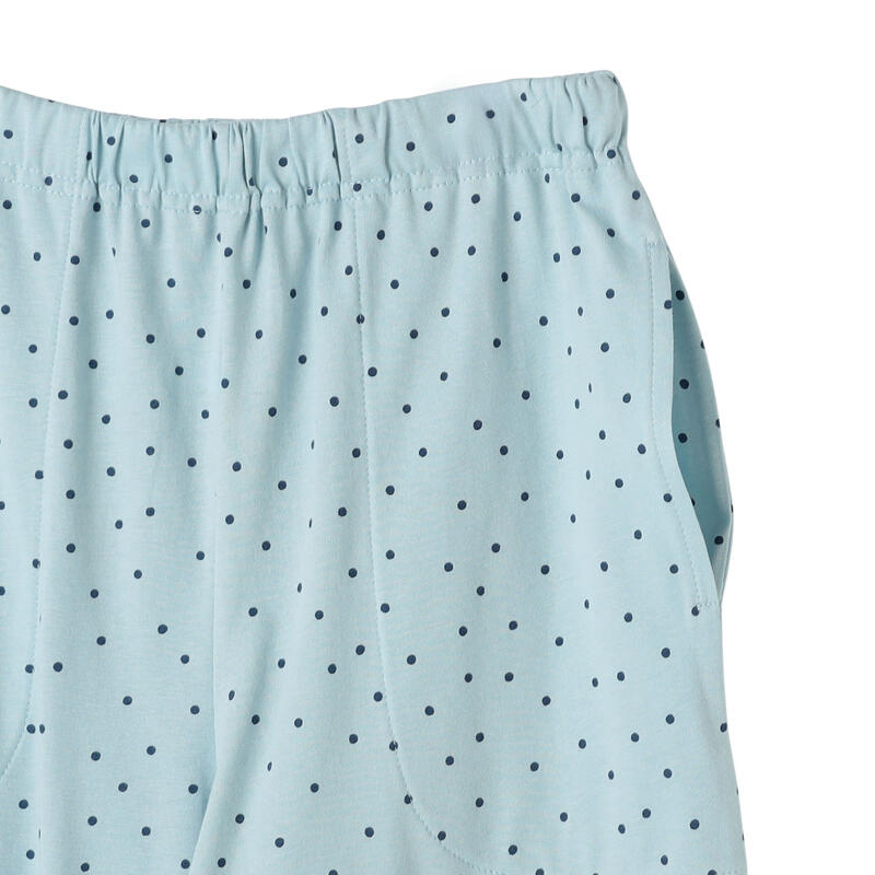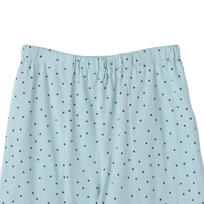 トップスはシンプルな無地、ボトムスはドット柄で可愛く仕上げました。