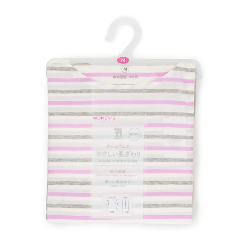 綿100%の肌触り柔らかな天竺素材を使用したルームウェア。吸汗速乾で汗冷えしにくい。
