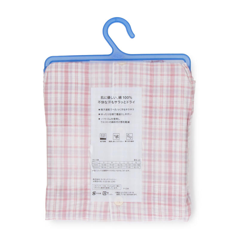 さらっとした綿100%サッカー素材。吸汗速乾でサラッとドライ。