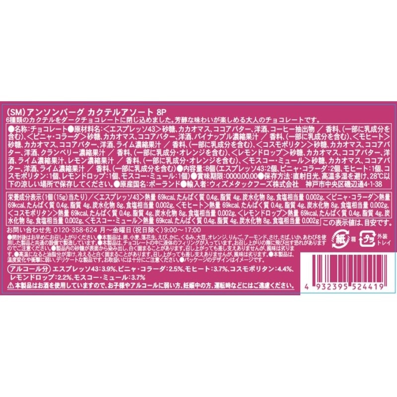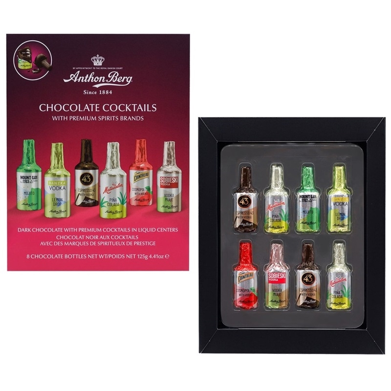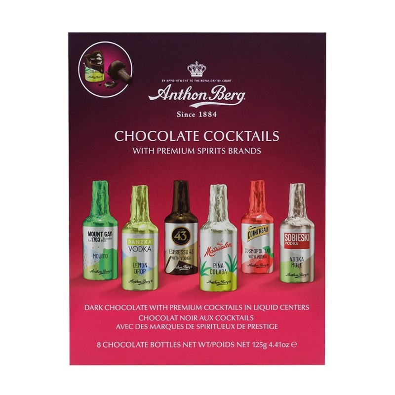 世界の銘酒を使ったカクテル入りダークチョコレート8個箱。