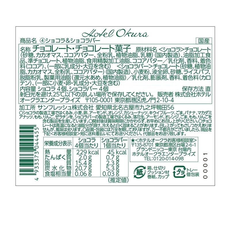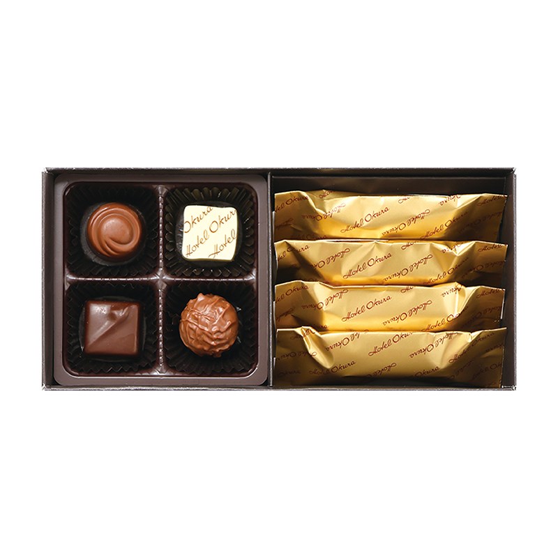 ミルクトリュフやロゴがプリントされたホワイトショコラ等に、ショコラバーをアソート。