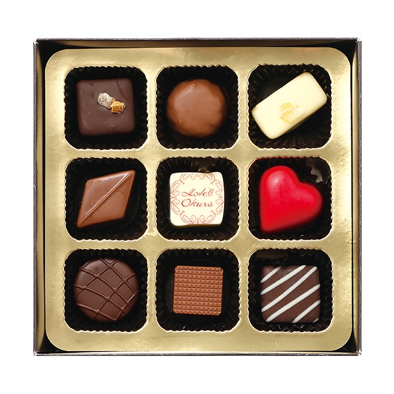 ハート型のラズベリー味のショコラやキャラメル、ピスタチオ味のショコラをアソート。