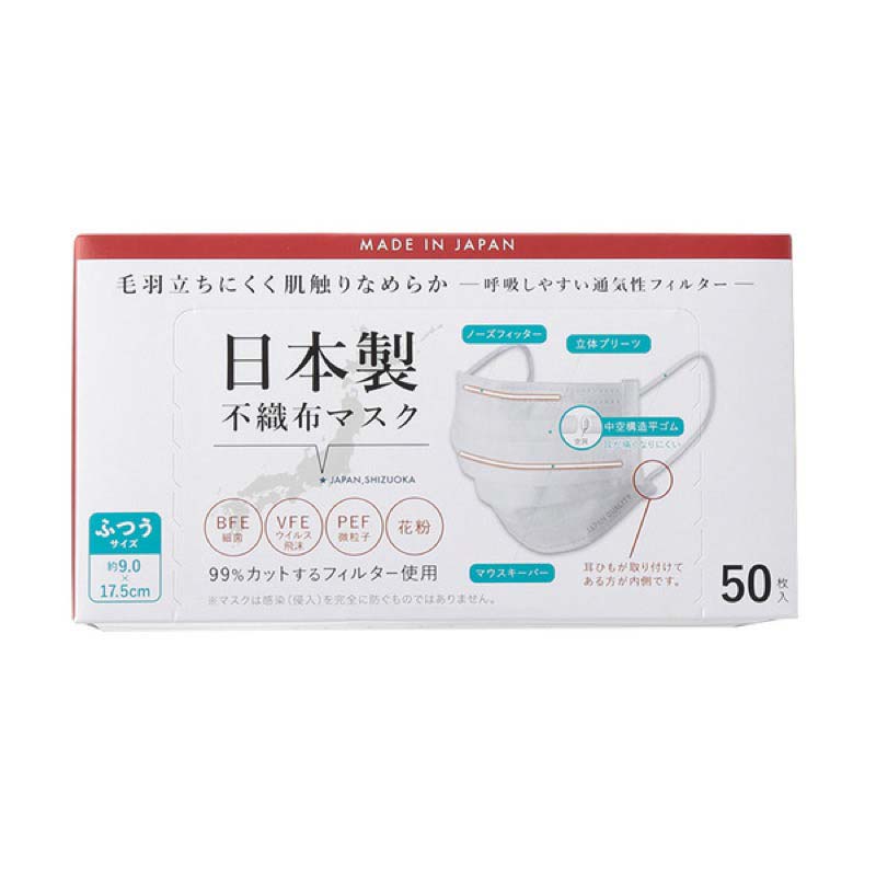 【いま売れてます】日本製不織布マスク ふつう 50枚