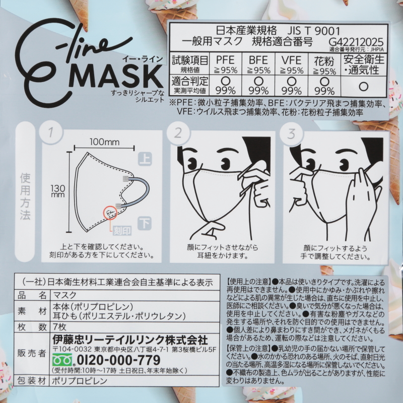 6mm幅の耳ひもで耳がいたくなりにくく快適なつけ心地。