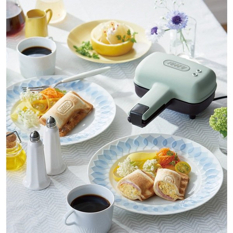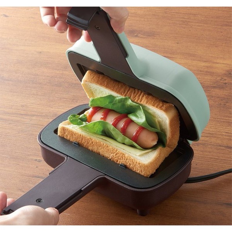 パンを置いて好きな具材をはさむだけで、あっという間にハーフホットサンドができあがります