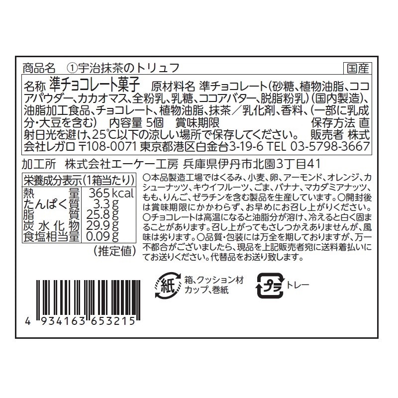 宇治抹茶を使用した2種類のトリュフショコラの詰め合わせ
