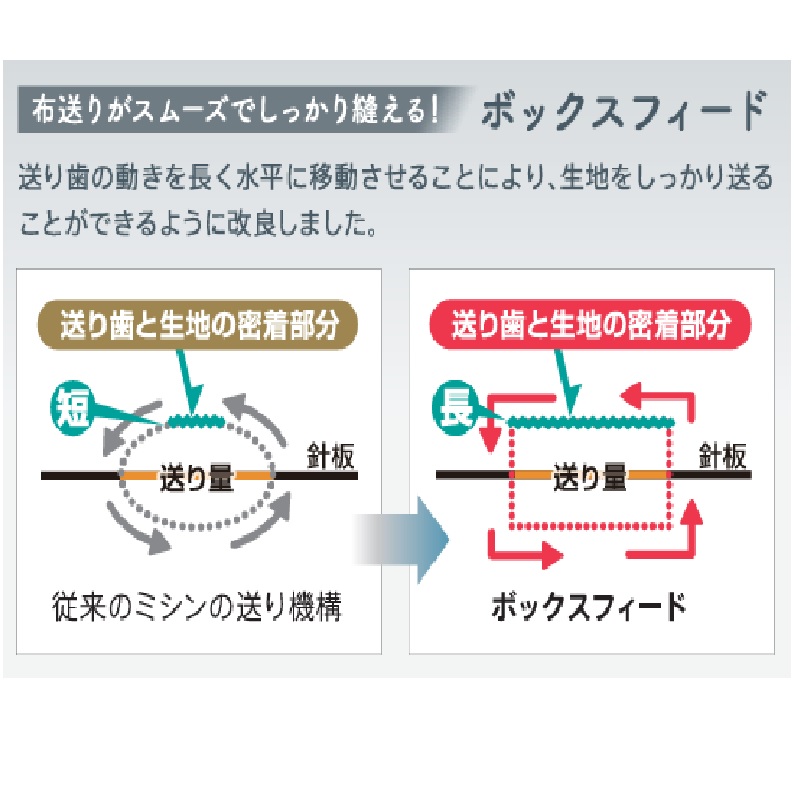・送り歯の動きを長く水平に移動させることにより、生地をしっかり送ることができるように改良しました。■標準付属品■