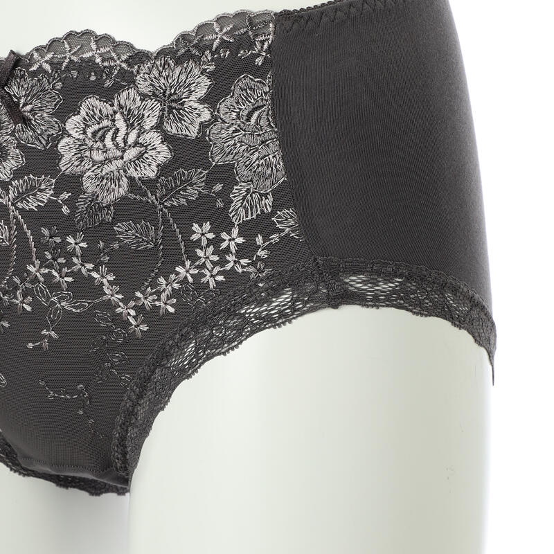表側は総レースでエレガンスに、後ろ側はおしりをすっぽり包む深めのシルエットではき心地にもこだわりました。
