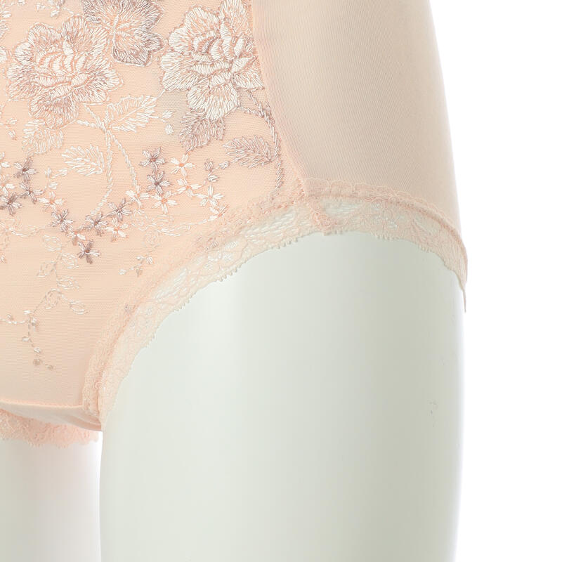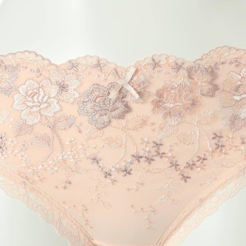 表側は総レースでエレガンスに、後ろ側はおしりをすっぽり包む深めのシルエットではき心地にもこだわりました。