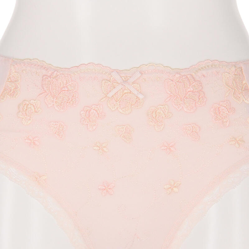 表側は総レースでエレガンスに、後ろ側はおしりをすっぽり包む深めのシルエットではき心地にもこだわりました。